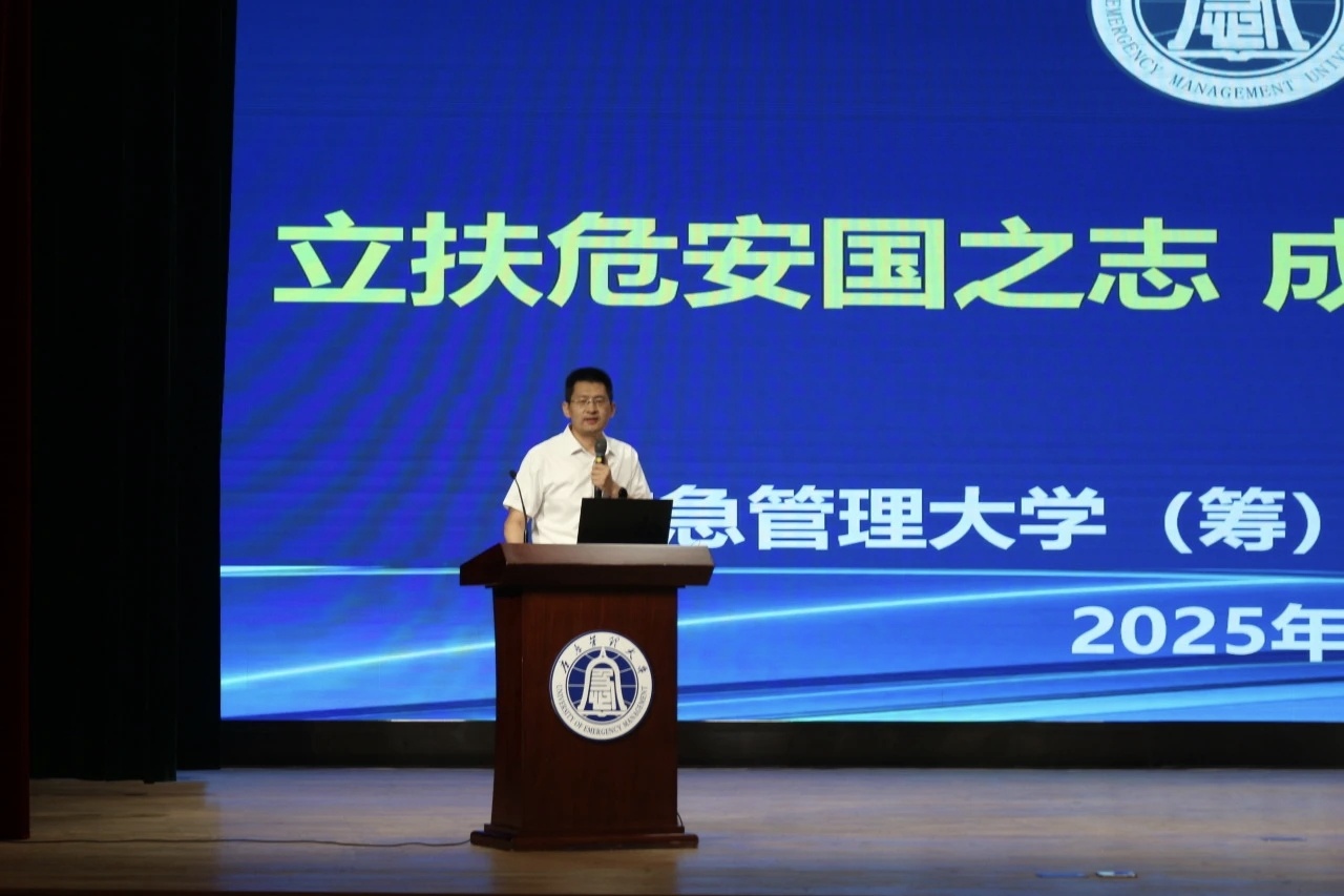 院长燕波涛以“立扶危安国之志,成经世济民之才”为主题为新生带来了开学第一课。燕波涛从“识局、明道、立人”三个层面展开,立足时代背景,响应国家号召,引导新生要锚定 “守护安全、服务社会” 的使命,以昂扬的姿态开启大学征程;深耕专业知识,探索科学路径,明确学生不仅要提升综合素养与能力,还要学习应急管理专业知识与技能,培养应急素养,利用AI技术助力应急管理工作,为应对各类灾害与安全风险筑牢学问根基;燕波涛强调同学们的四年大学生活要以成长超越为目标,要明确阶段成长方向,在专业学习与实践中,锤炼应急管理本领,成长为有担当、能作为的应急管理人才,为国家应急管理事业贡献力量。
