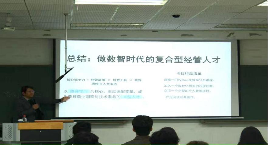 不仅如此,王老师还告诉同学们,要培养并不断扎实数据素养这项基本功,他说,在当今社会发展大环境下,会数据等于会呼吸,作为经管学生的我们更应熟练掌握、运用数据,使其真正地服务于我们的生活和学习。