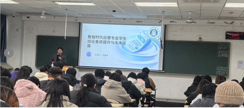 在数智化浪潮席卷全球的今天,经管专业学生正面临前所未有的挑战:技术迭代加速、行业边界重构、能力要求升级……是迷茫退缩,还是主动破局?经管学业大讲堂特邀教工第一党支部、应急供应链系创始主任王建平老师,以“数智时代背景下经管专业学生综合素质提升与未来发展”为主题做了深度分享。