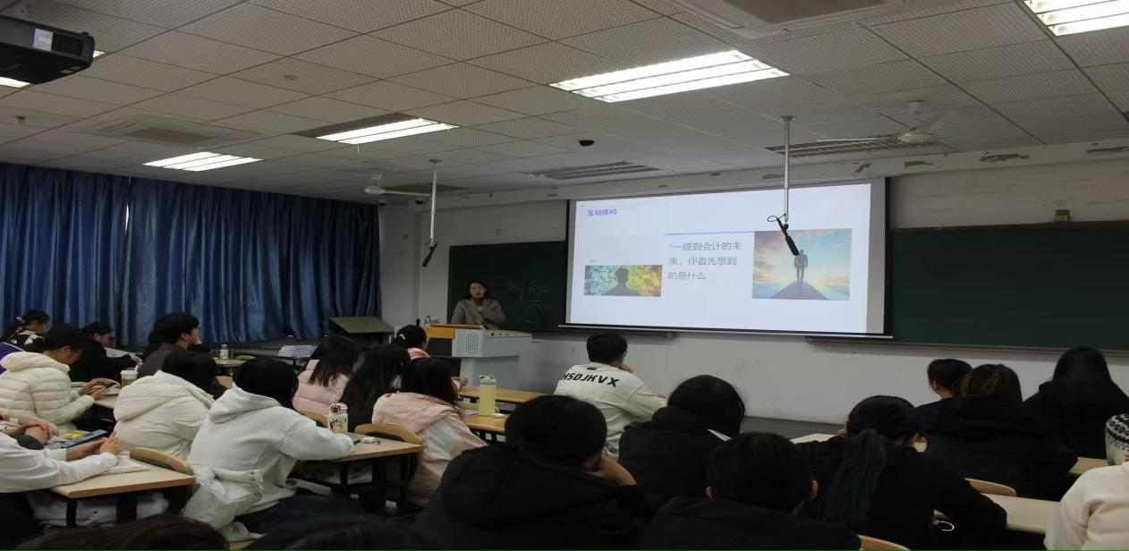 在讲座的开头,莫老师以“你认为会计专业的未来是什么样的”为话题展开了提问,激起了同学们的热情。
