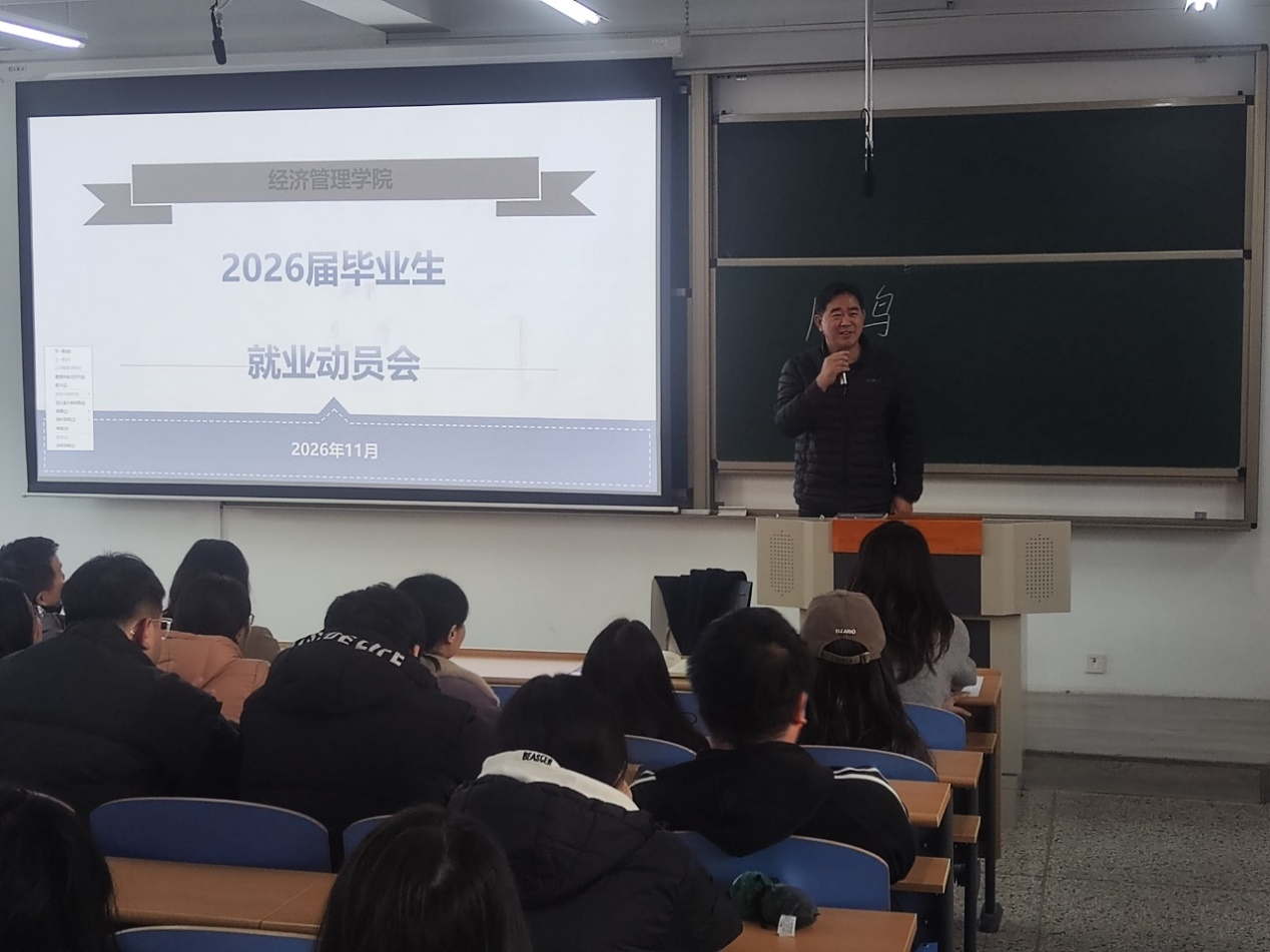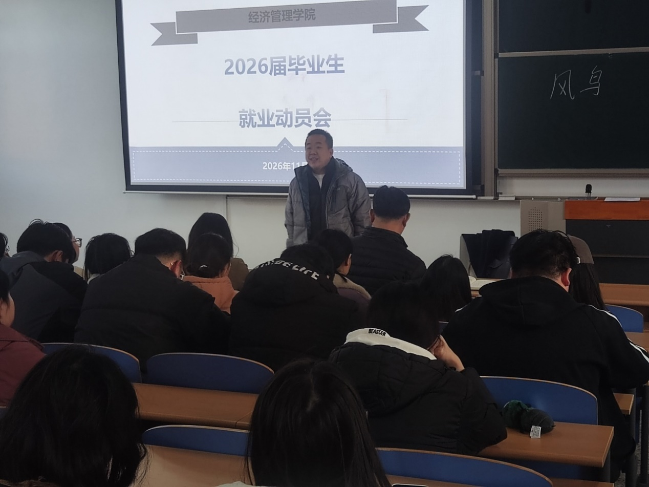 为有效提高毕业生就业意识,助力毕业生顺利就业,实现就业工作目标。近日,我院在文德楼组织召开2026届金融学、工商管理专业毕业生就业动员会。学院联合党委书记谢长旺、金融学教研室主任孙岩、工商管理教研室主任樊亚宾、宋晓刚、辅导员孔雅萌以及两个专业全体毕业生参加会议。