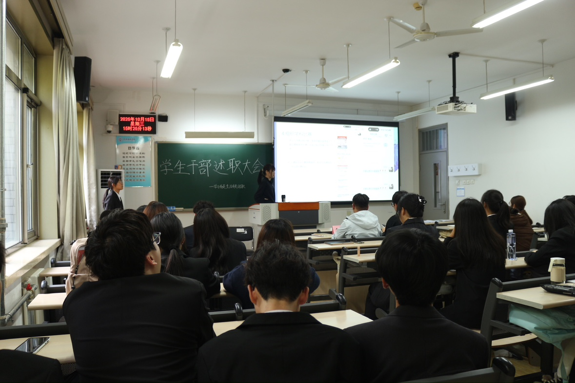 述职会议上,各班级学生干部与对应团总支学生会部门分别述职,参加。会上。班委们依次汇报了过去一学期承担的工作、取得的成果,并分享了工作经验,包括遇到的问题及解决方案。各部门部长对本部门的职责和对应班级委员工作职责做了详细的介绍。最后,与会老师对大会进行了详细且全面的总结,并对2025级新任学生干部提出了具体要求。