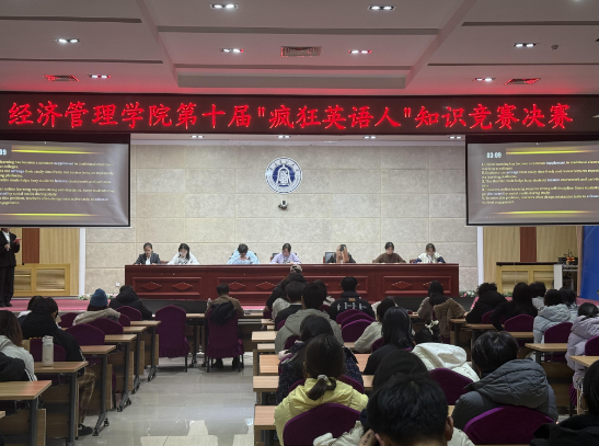 为激发学生学习英语的热情,增强英语语言技能,12月3日下午,我院在明德楼328举办了第十届“疯狂英语人”英语知识竞赛决赛。经济管理学院团总支书记陈杰、专职组织员黄义乾、辅导员孔雅萌、邓天宇、李文帅等老师参加了活动。
